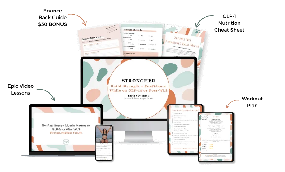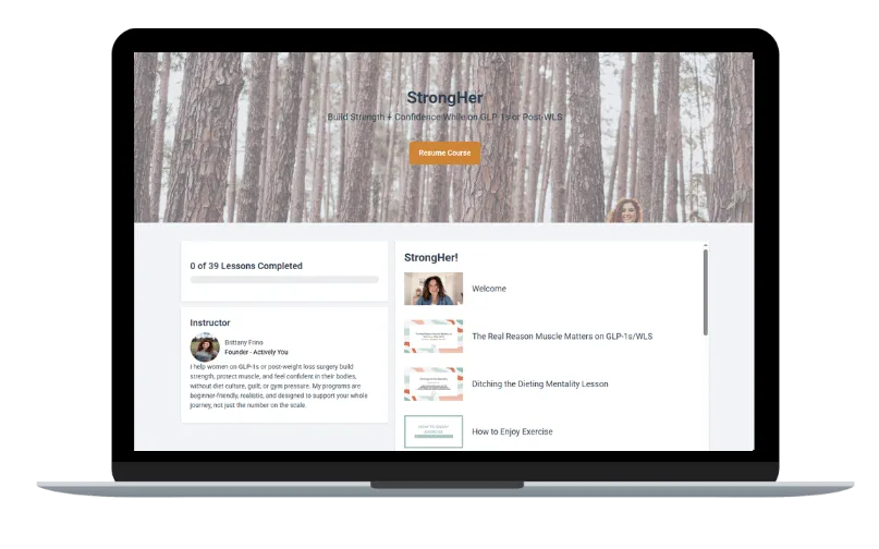 StrongHer isn’t just a workout plan. It’s a complete toolkit designed to help you feel stronger, more confident, and fully supported while on GLP-1s, so you can enjoy your transformation without burnout or guilt.